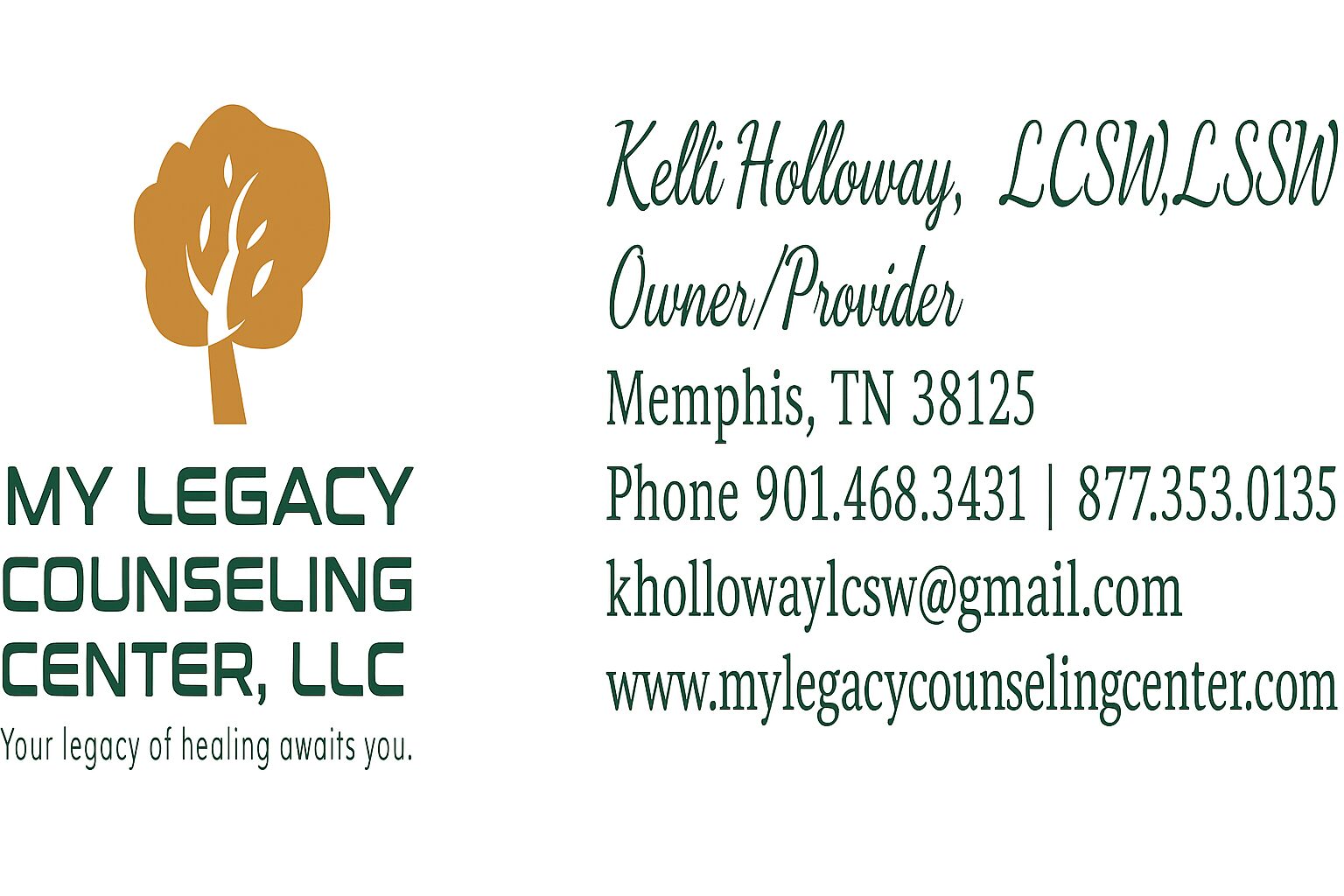 - Website: https://www.mylegacycounselingcenter.com