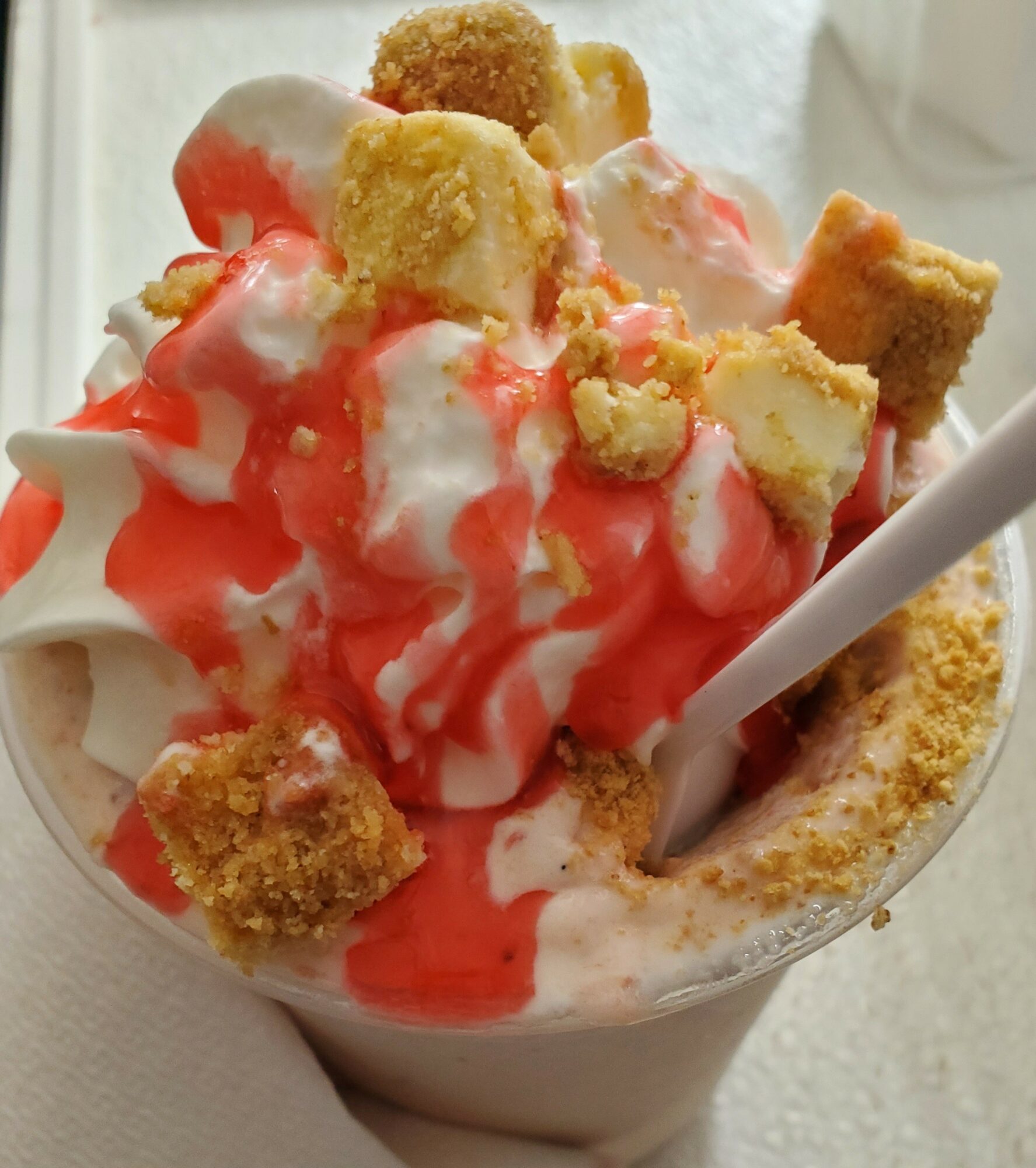 We like to look at all of our ingredients and come up with something new. When fall was around the corner, it gave us a new excitement because we could then add our fall menu. We took some of our favorites, peach cobbler, apple pie, caramel apples and fudge brownies and turned them into beautiful shakes and sundaes. We also like to think outside the box. We have ice cream nachos which you can personalize with any of our 30+ flavors of soft serve.