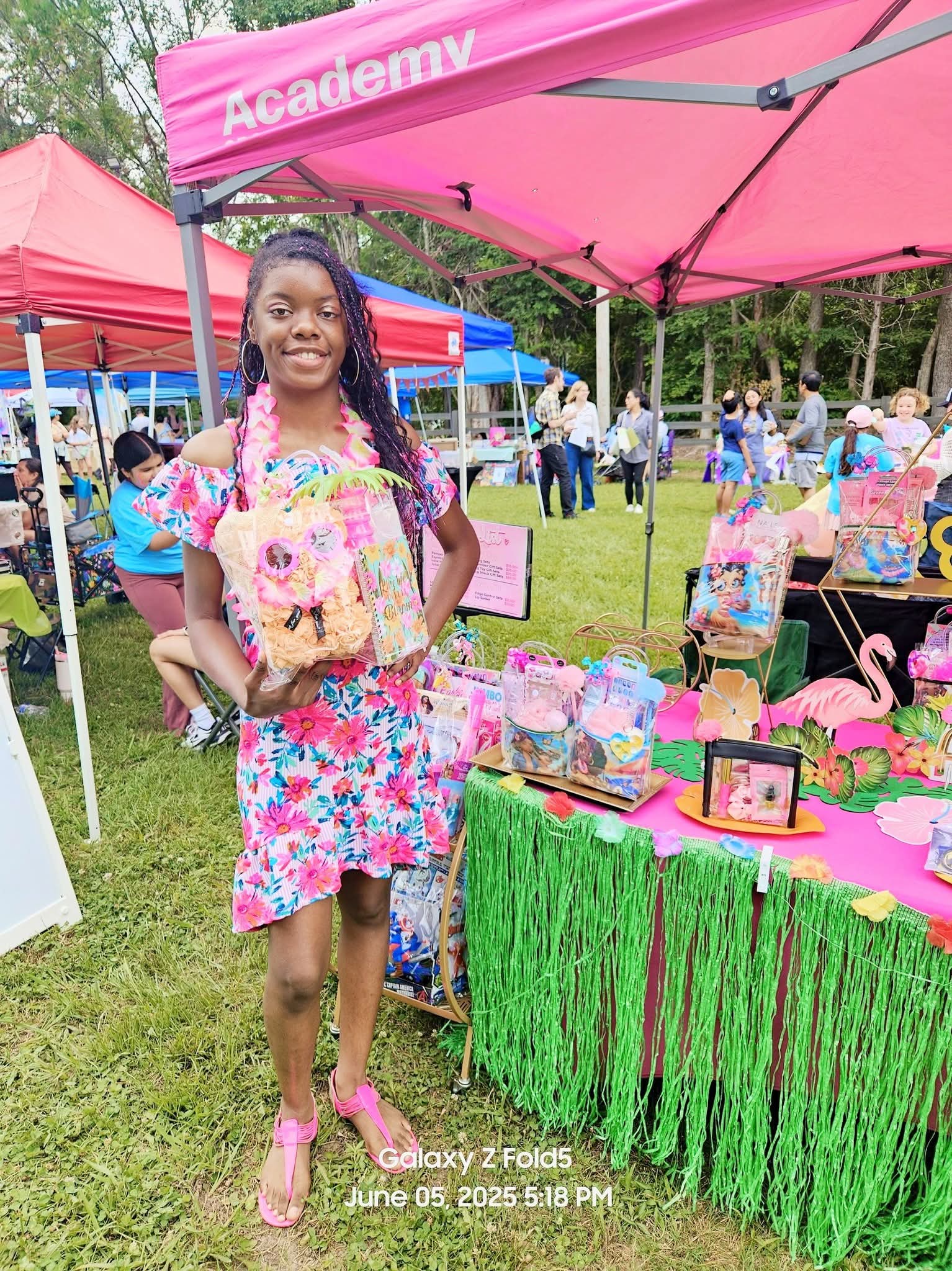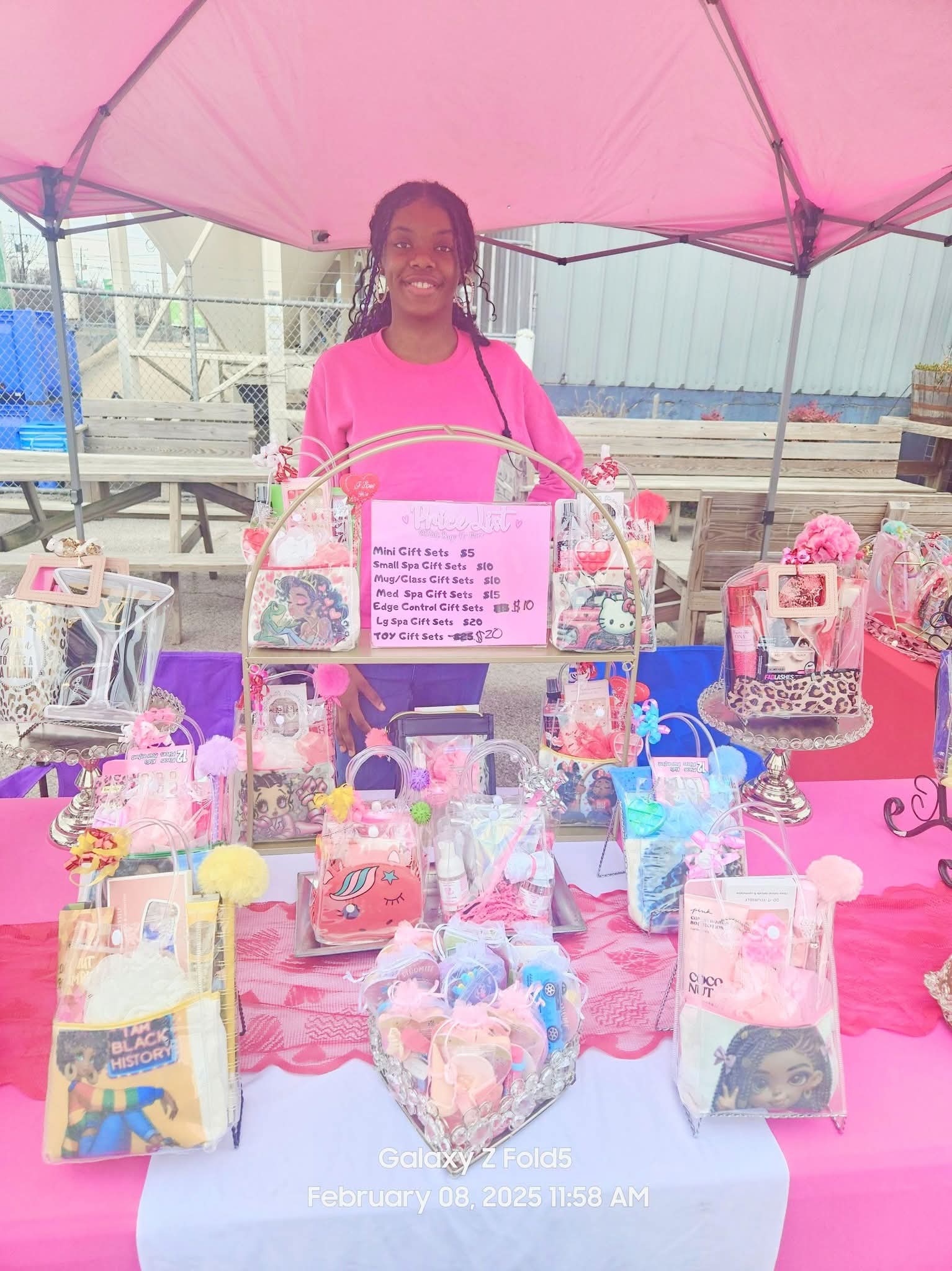 I take risks by trying different types of gift sets and learning what people enjoy the most. Some people love gift set bags with affirmations and positive images, while some youth prefer fun toy-themed sets. My family also helps by sharing ideas, feedback, and advice, which helps me create new and exciting gift sets for everyone.