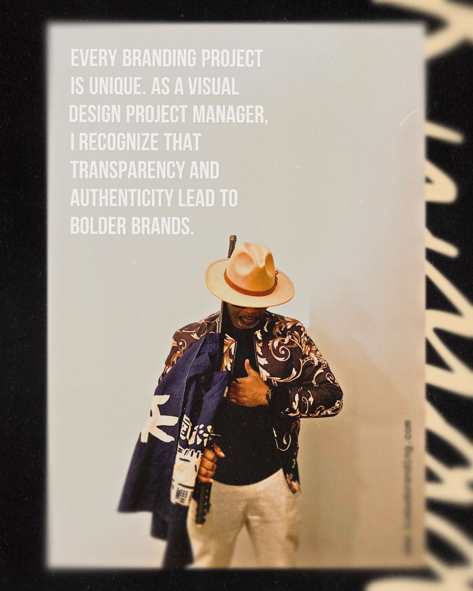 The KUMAA Visual Process(TM) is my layout for completing creative projects. My process is influenced by Japanese minimalism and Memphis grit: say less, mean more, and move with purpose. My background as an African-American male from the great City of Memphis, who designs brand elements is rare. I’m also a known beat-maker/artist, which gives me a uniquely creative advantage within the brand design market. (Chatbot my artist: Ponce Beyond)