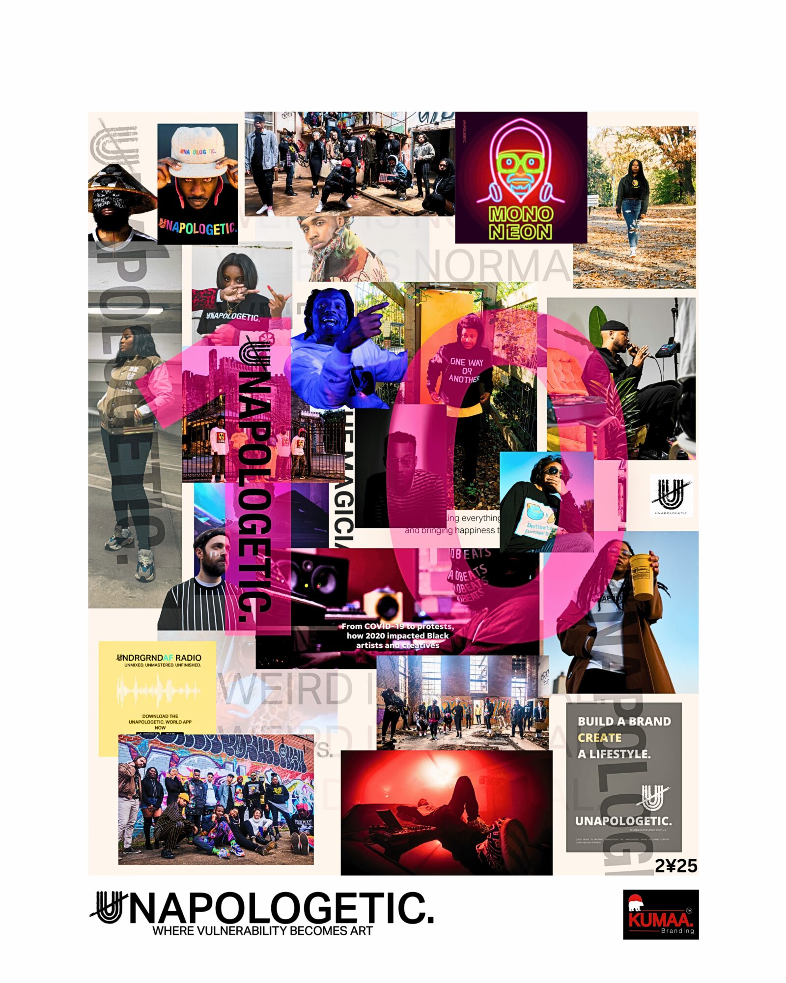 KUMAA specializes in creating visual brand systems: logos, typography, color systems, brand foundations, and strategic direction that help businesses and founders show up with intention and consistency in the their respective markets from day one. Every brand touchpoint is designed and guided in-house—no outsourcing, no fluff, no 3rd-party handoffs—so clients get a focused, highly personal experience rooted in thoughtful strategy, not industry bullshit.